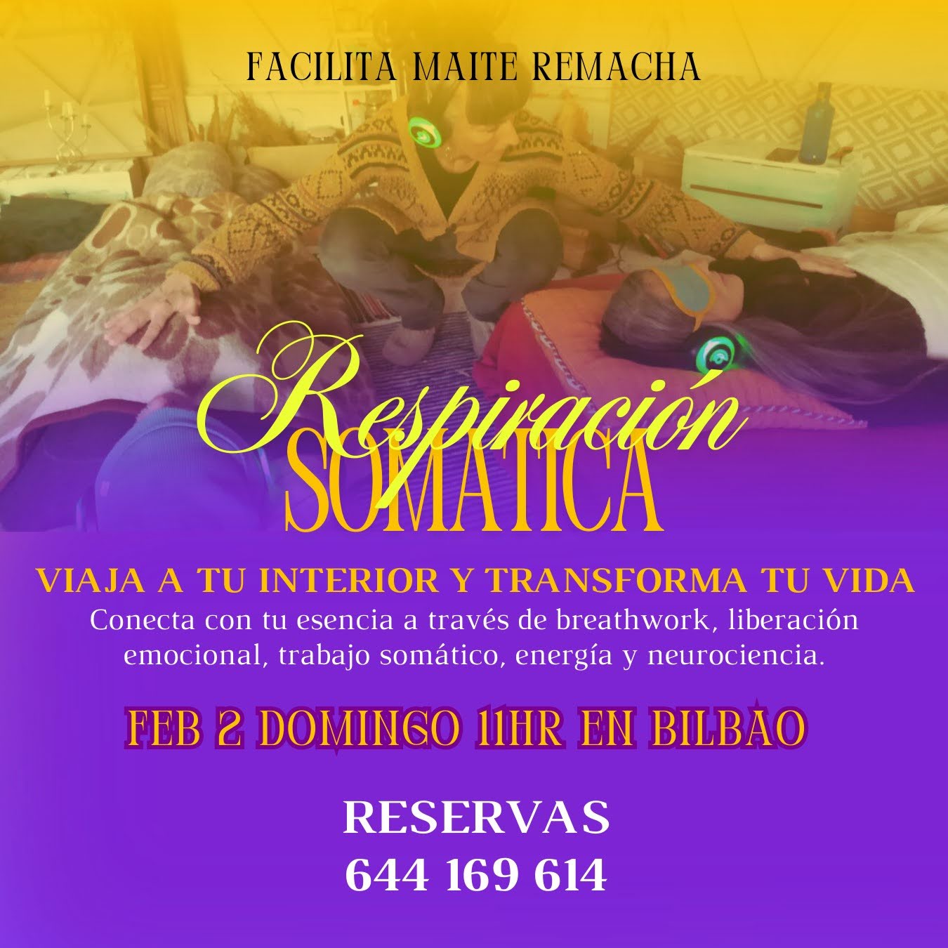 En pleno centro de Bilbao (Ommmmm Espazioa, Alameda Urkijo 28.) Un viaje de liberación y transformación hacia tu interior a través de diferentes técnicas de liberación emocional, breathwork, trabajo somático, energético, neurociencia y programación neurolingüística a través de la guía de nuestra voz, el poder del sonido y los auriculares inalámbricos. Una cita contigo mism@ donde accederás a tu subconsciente liberando las cargas emocionales, hackearás tu mente, sobrepasarás todos tus límites, accediendo a un nuevo nivel de consciencia que te permitirá liberar tu cuerpo, tu mente y descubrir tu máximo potencial.